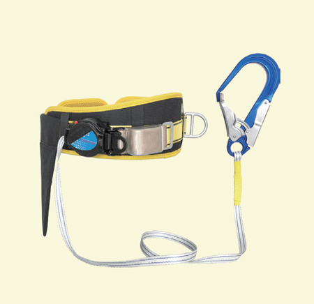 特點:速差式單腰安(ān)全帶,鋁合金大挂鈎,備用(yòng)D環,龍頭護墊,護腰,緩沖包